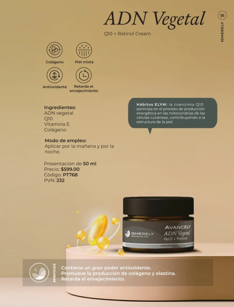 Ismerely presenta su ADN Vegetal Q10 + Retinol Cream 50 ml, una crema facial diseñada para sumar energía, protección y firmeza al rostro. La fórmula combina Coenzima Q10 vegetal con retinol, dos ingredientes muy codiciados en cosmética natural. Aquí exploramos a fondo qué puede aportar esta crema y por qué podría interesar a personas en Estados Unidos que buscan productos importados de México.