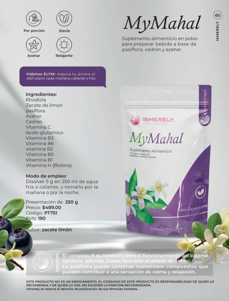 Mahal Té con L-Teanina de Ismerely es una bebida funcional que combina el poder ancestral de plantas calmantes como la tila, cedrón y valeriana con el aminoácido natural L-Teanina, conocido por su capacidad para relajar sin sedar.